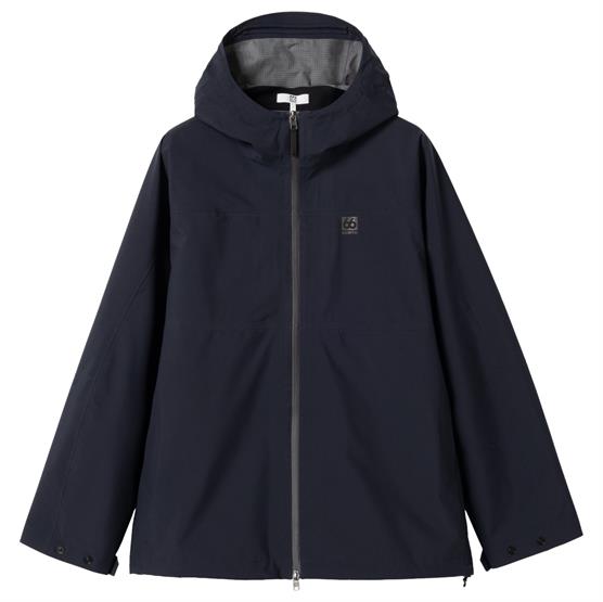 Adalvik jakken er fremstillet i 100% genanvendt polyester og har en vandtæthed på 15.000 mm, hvilket giver solid beskyttelse mod regn og vådt vejr. Alle sømme er tapede, så vand ikke trænger ind, og konstruktionen fremstår samtidig enkel og ren i udtrykket.