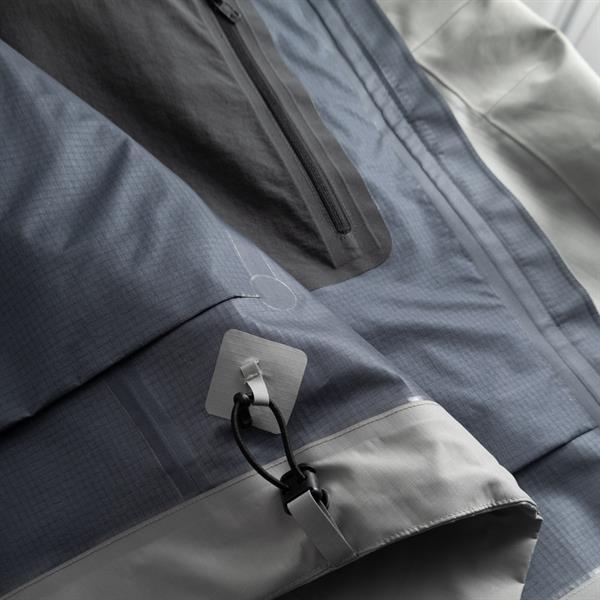 GoreTex Pro 3L membran, som giver fuld vand- og vindtæt beskyttelse med høj åndbarhed. Konstruktionen er bygget op omkring en slidstærk yderflade i 100% polyamid, der tåler hårdt brug fra rygsæk, klippe og udstyr. Materialet er desuden 100% PFAS-frit, hvilket reducerer miljøpåvirkningen uden at gå på kompromis med performance.
