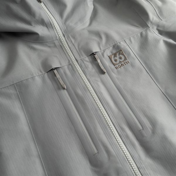 66°North Hornstrandir får du en skaljakke i Grey Sky, der forener islandsk outdoor-arv med moderne teknologi - skabt til kvinder, der ikke går på kompromis med kvalitet og beskyttelse.