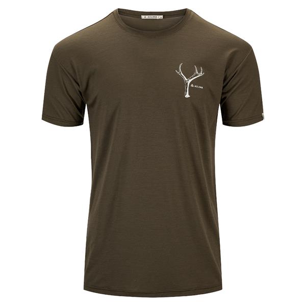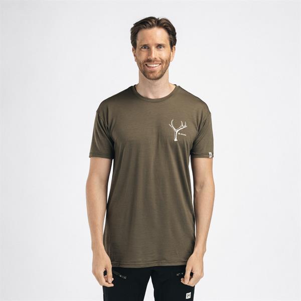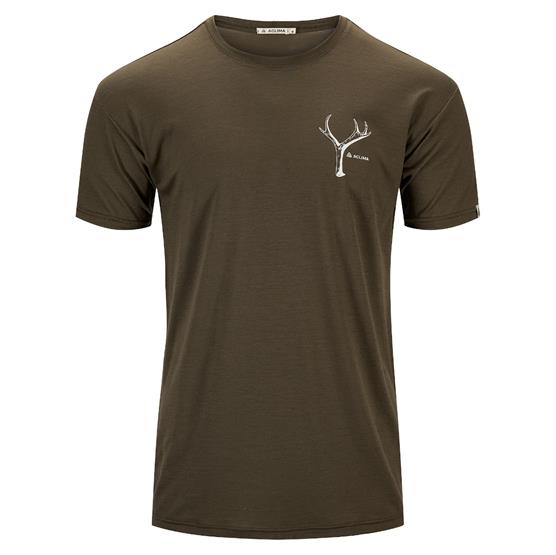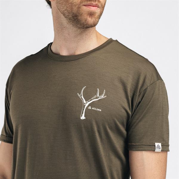 Let svedtransporterende t-shirt i merinould med et gevirdesign på brystet.