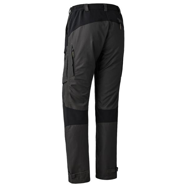 Deer-Tex membran, der beskytter effektivt mod regn, blæst og fugtigt terræn. Med et vandsøjletryk på 5000 mm og en åndbarhed på 3000 g får du et buksevalg, der holder dig tør udefra, men samtidig hjælper med at lede varme og fugt væk indefra, når tempoet stiger. Overfladen er behandlet med en