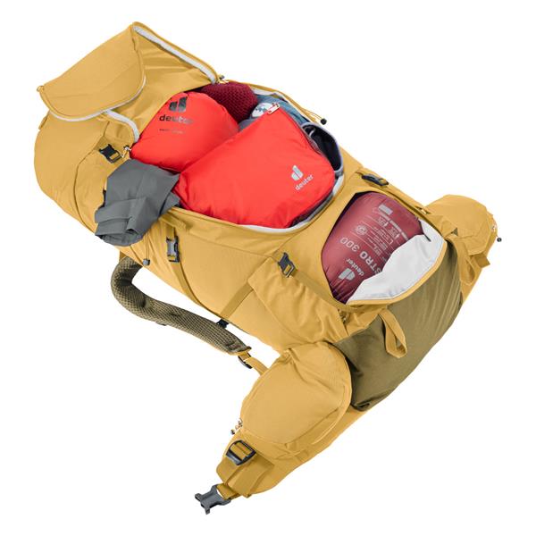 En rummelig og komfortabel vandrerygsæk til længere ture - med fleksibel volumen, stærk vægtfordeling og et bæresystem, der følger kroppen, når terrænet bliver ujævnt og dagene lange.