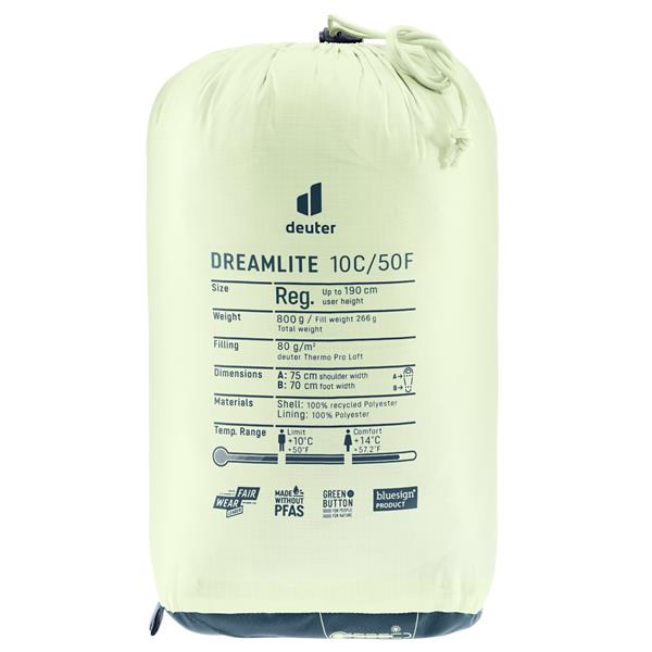 Dreamlite 10C er et godt valg til dig, der vil have en enkel og funktionel sommersovepose, som er nem at have med og nem at bruge – uanset om du sover under åben himmel, i telt eller i shelter. Du kan se hele vores udvalg af Deuter Soveposer