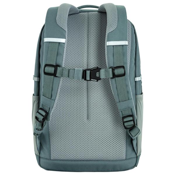 Bæresystemet er lavet med komfort i fokus. Polstrede skulderstropper, en justerbar bryststrop og et rygpanel med netmateriale, der giver bedre ventilation og behagelig støtte. På siderne sidder to rummelige sidelommer i strækbart stof til drikkedunk eller småting, der skal være let tilgængelige.