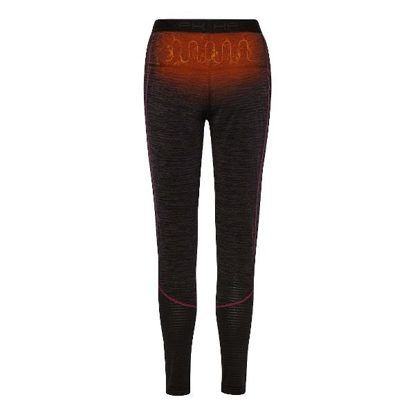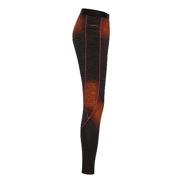 Stoffet er blødt, strækbart og følger kroppen naturligt, og i materialets struktur ligger seks diskrete varmezoner, placeret omkring lår, knæ og lænd. Varmezonerne aktiveres uden at mærkes stive eller generende, og giver en jævn, stabil varme, der gør en mærkbar forskel, når temperaturen falder. Konstruktionen gør, at du kan bevæge dig frit, mens varmen fordeles ensartet og føles som en naturlig del af baselayeren.