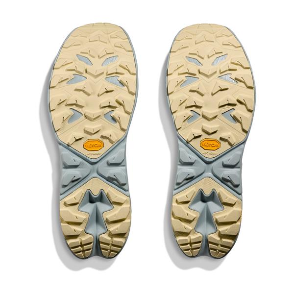 Under foden ligger HOKAs lette og super fjedrende mellemsål, som absorberer stød og gør hvert skridt mere behageligt – især på hårdere underlag som grusveje, stenede stier og lange etaper. Den høje komfort kan mærkes i både fødder, knæ og hofter, når turen trækker ud. Skoene har en
