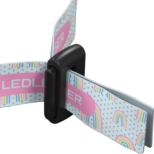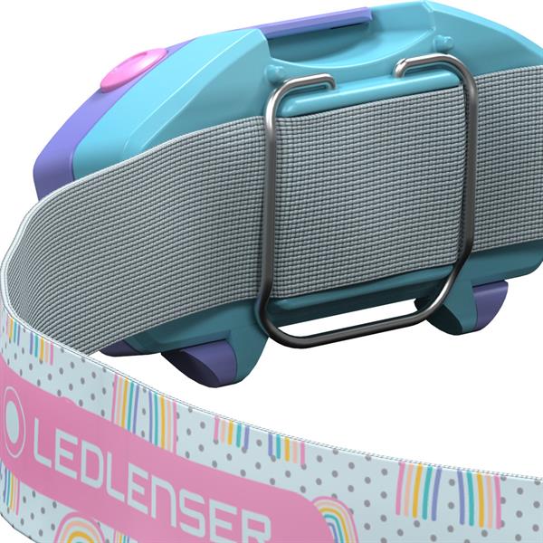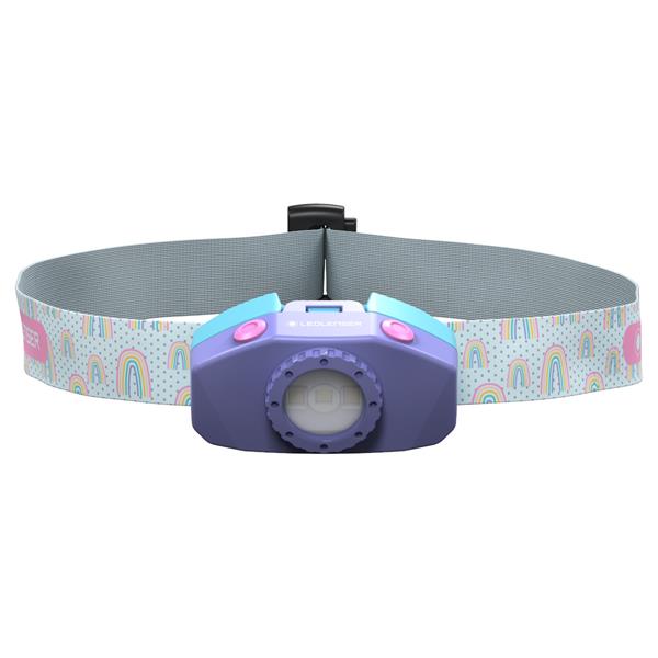 LED Lenser Kidled2 Purple vejer kun 35 gram og er udstyret med en blød, elastisk rem, der kan tages af og vaskes. Lygten har to lysstyrker – 5 lumen i Low Power og 40 lumen i Power – samt