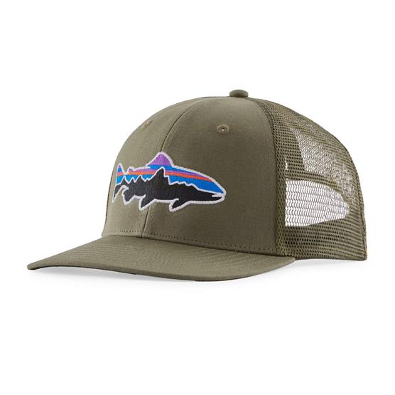 Patagonia Fitz Roy Trout Trucker Hat, har den obligatoriske ørred som logo på denne serie af kasketter.