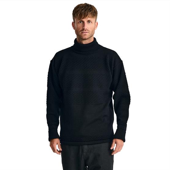 Den høje rullekrave slutter behageligt til omkring halsen og beskytter mod vind og kulde, mens de brede ribkanter i ærmer og bund sikrer en tæt og fleksibel pasform. Med sin afslappede, rummelige form sidder trøjen naturligt på kroppen og giver fuld bevægelsesfrihed, uanset om du arbejder udendørs, sejler eller bare nyder livet i naturen.
