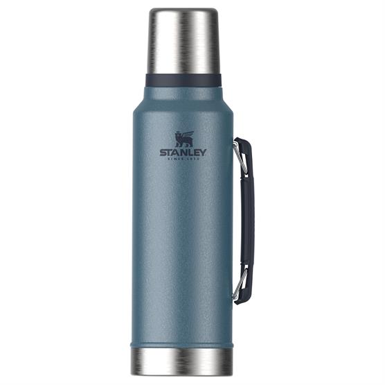 Robust termokande i en flot kongeblå farve, med stor kapacitet på 1,4 liter og praktisk foldehåndtag til transport.