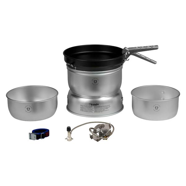 Sættet består af 2 kasseroller på hver 1,5 og 1,75 liter, en pande på 22 cm, 2 vindskærme, rem og grydegreb samt Gasbrænder. 25-3 UL er et let og komplek Stormkøkken til alt slags vejr, med en samlet vægt på kun 980 gram. Når sættet er pakket fylder det 22 x 11 x 22 cm. Gasbrænderen gør at du kan koge en liter vand på ca. 3 minutter, og med 2 rummelige gryder og en pande, er der masser af muligheder for at udfolde sig i dit Camping køkken.