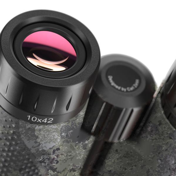 Kikkerthuset er kompakt, solidt og udformet til aktiv brug. Den diskrete camo-farve gør kikkerten velegnet til jagt, hvor synlighed skal holdes på et minimum, og hvor udstyret naturligt skal falde ind i omgivelserne. Med